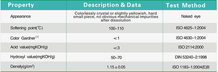 Dissolved into solvents to prepare the 50% resin solution, and then added it into coatings/oil ink formulas apprriately. Recommended adding percentage is 5-30% of the formula’s total mass.