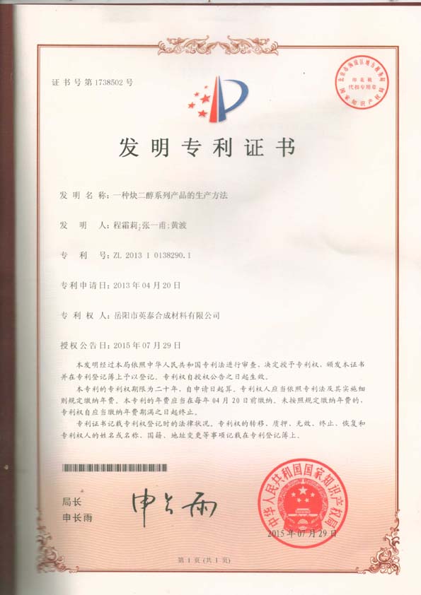 專(zhuān)利二:一種炔二醇系列產(chǎn)品的生產(chǎn)方法