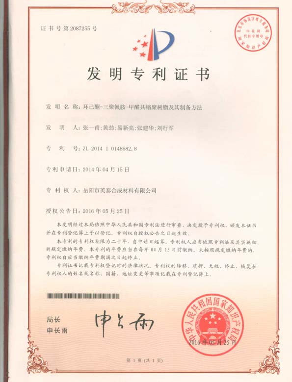 專(zhuān)利四:環(huán)己酮-三聚氰胺-甲醛共縮聚樹(shù)脂及其制備方法
